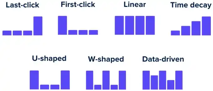 Pentru o imagine mai completă a ceea ce determină conversiile, marketerii din ecommerce se orientează către modele de atribuire mai sofisticate. Iată câteva care reflectă mai bine parcursul actual al cumpărătorului, pe mai multe canale și dispozitive: