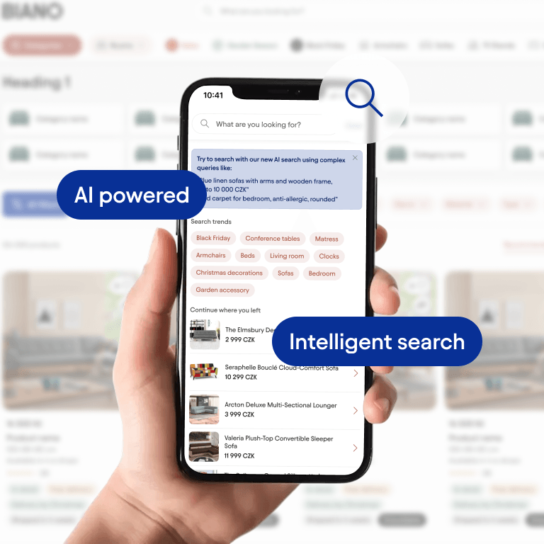 Descrie ce cauți ca și cum ai vorbi cu un vânzător. AI aplică automat toate filtrele și afișează rezultatele dintr-o singură căutare.