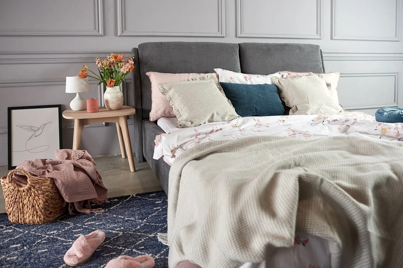 Pat Laura 160x200 cm, stejar Saltele: Fara saltea, Somiera pat: Cu lamele curbate